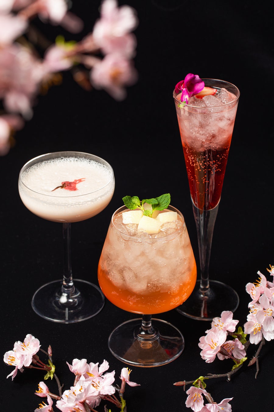 大人のお花見デートの乾杯には、桜がふんわりと香るオリジナルカクテルがふさわしい。