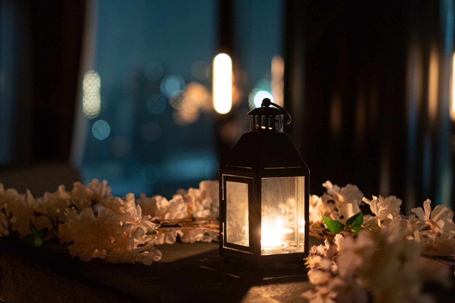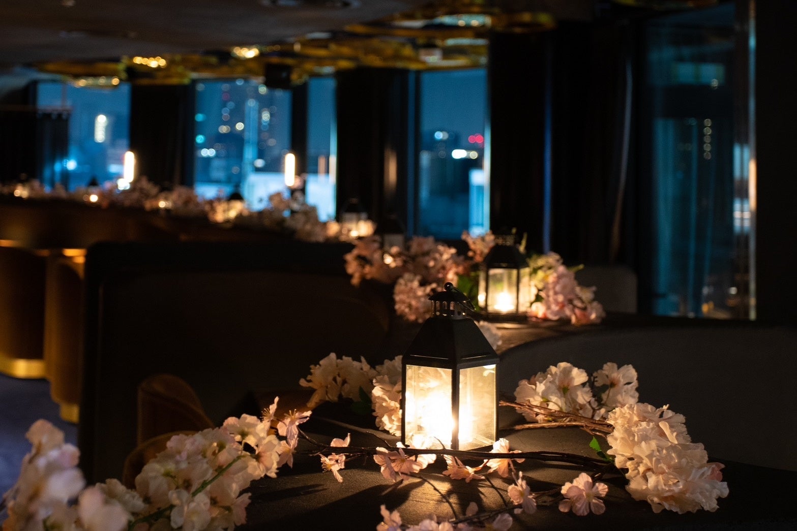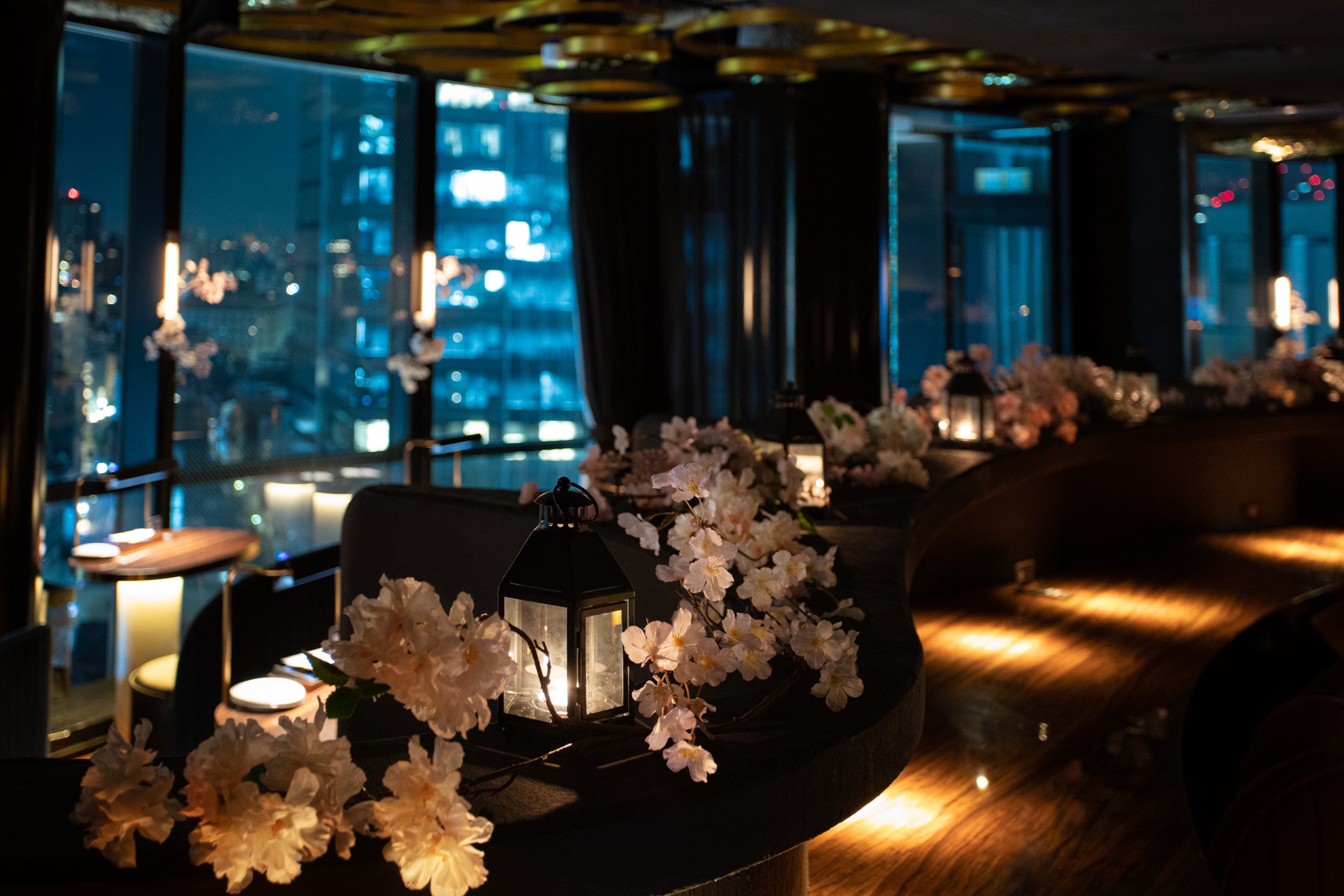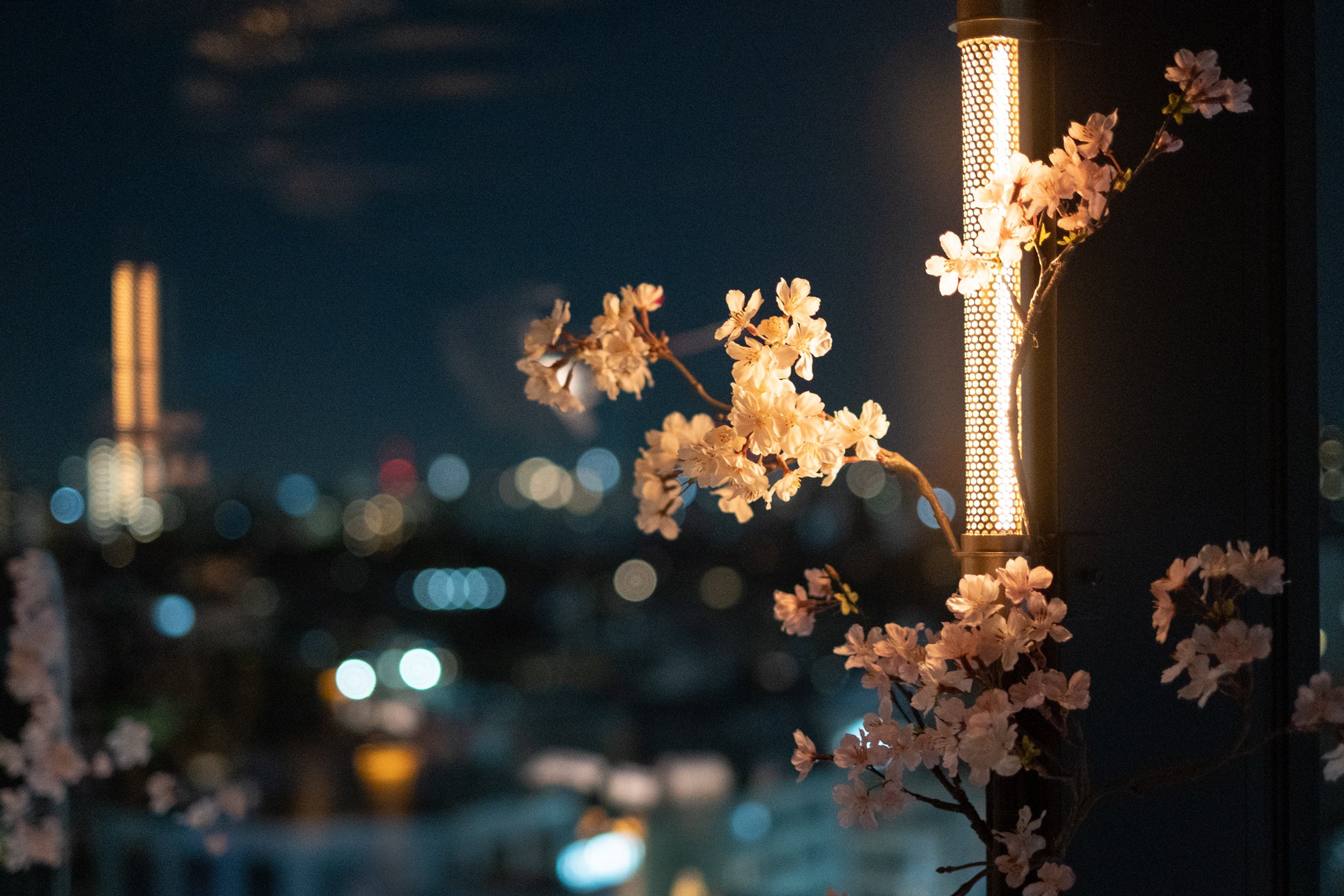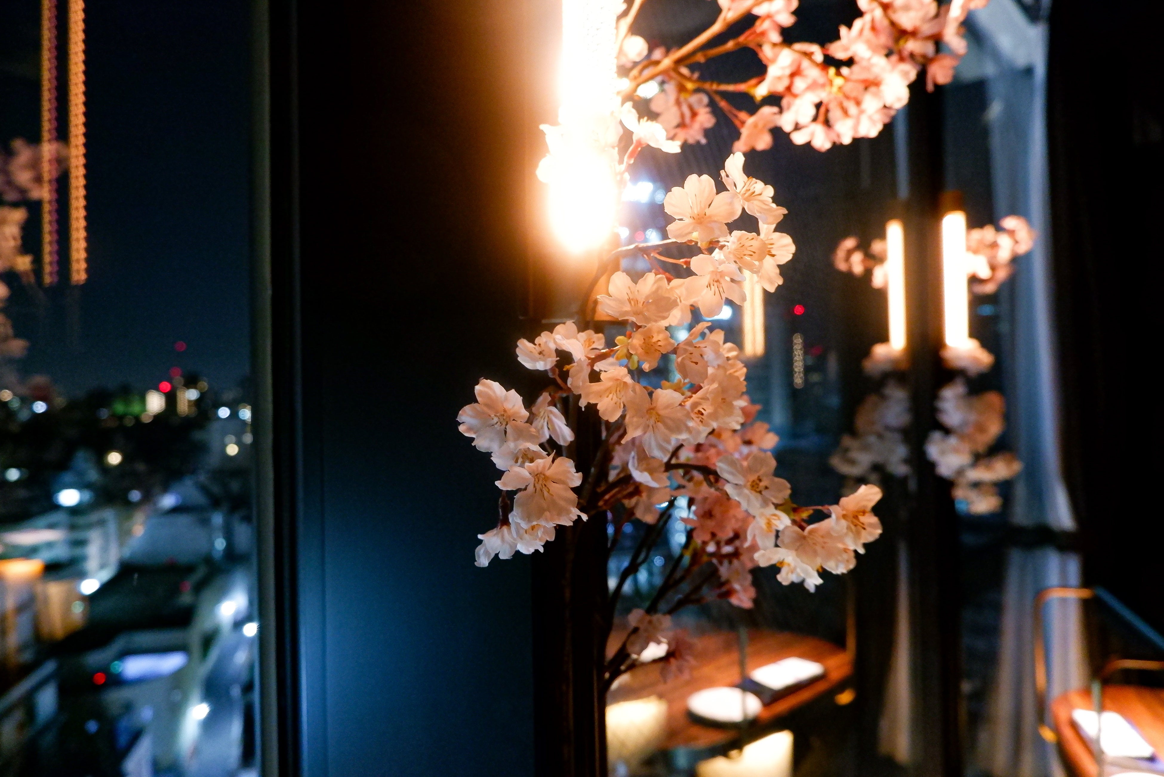 12階からの夜景と共に浮かぶ桜を二人占め。