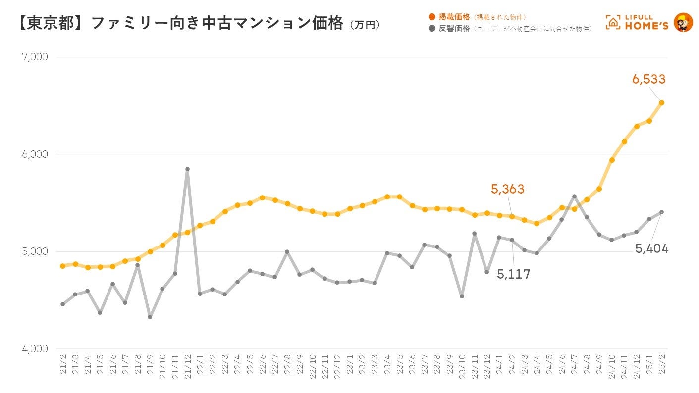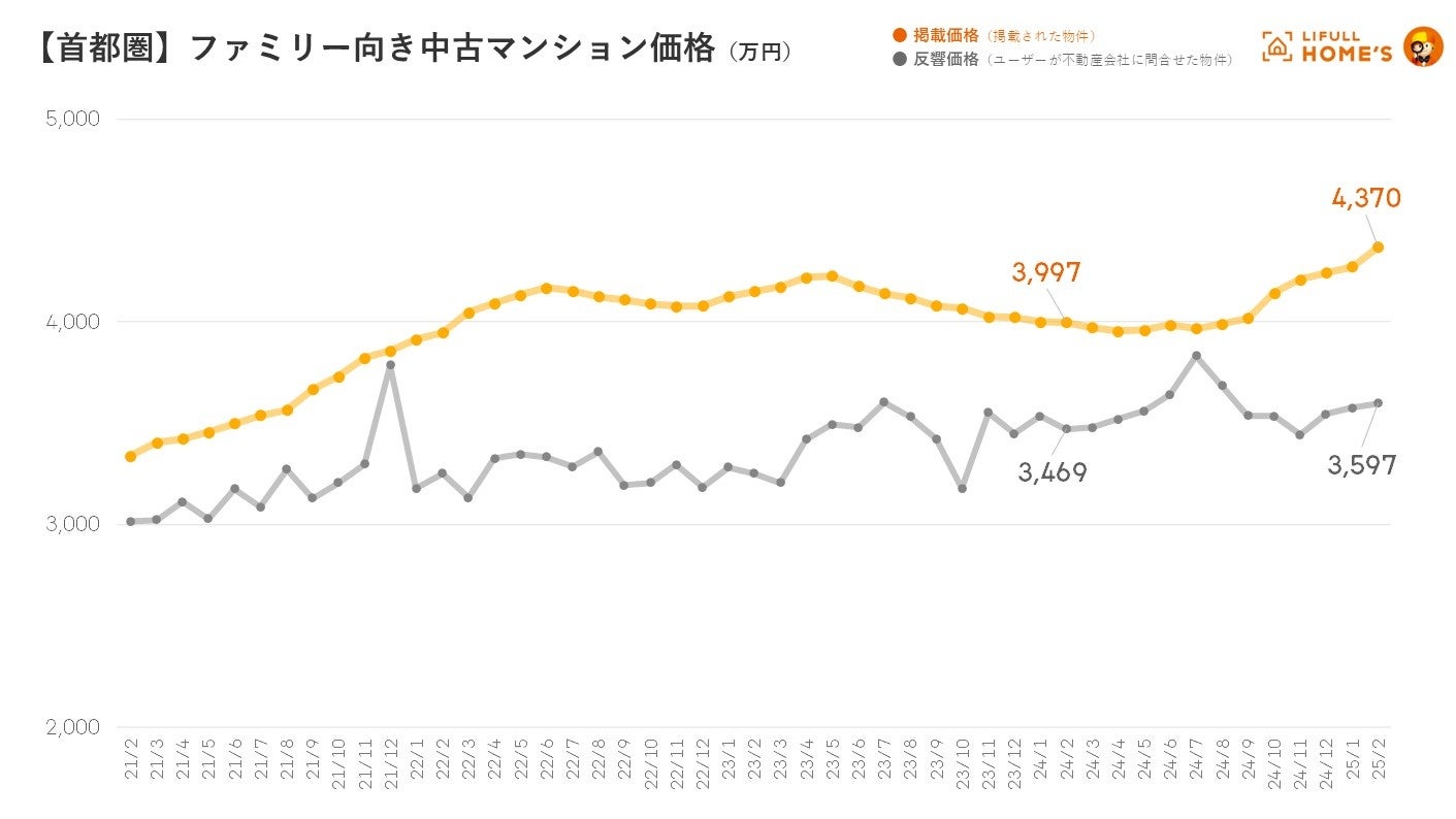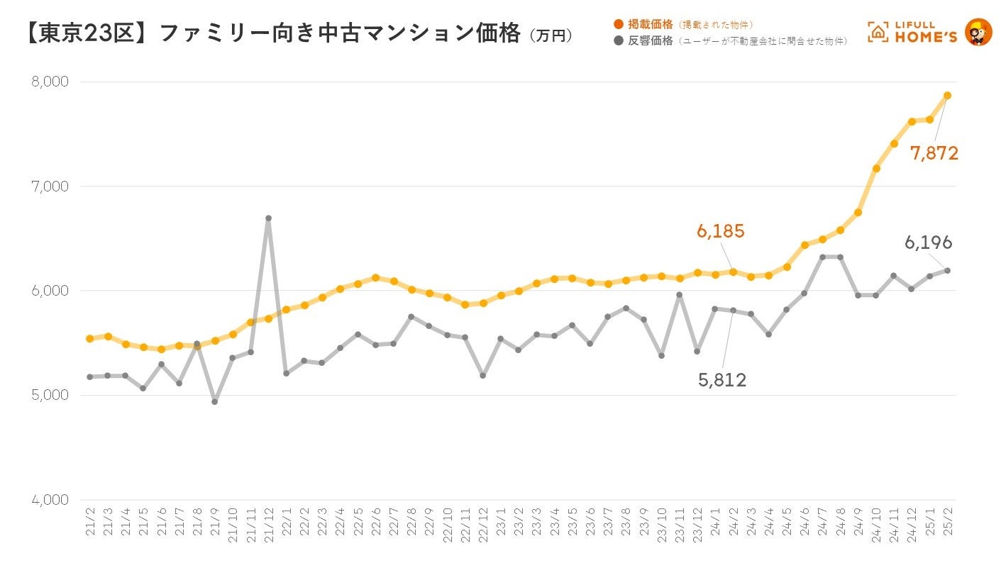首都圏の掲載価格は過去最高*1を更新。東京23区ファミリー向きは前年比27%の大幅上昇