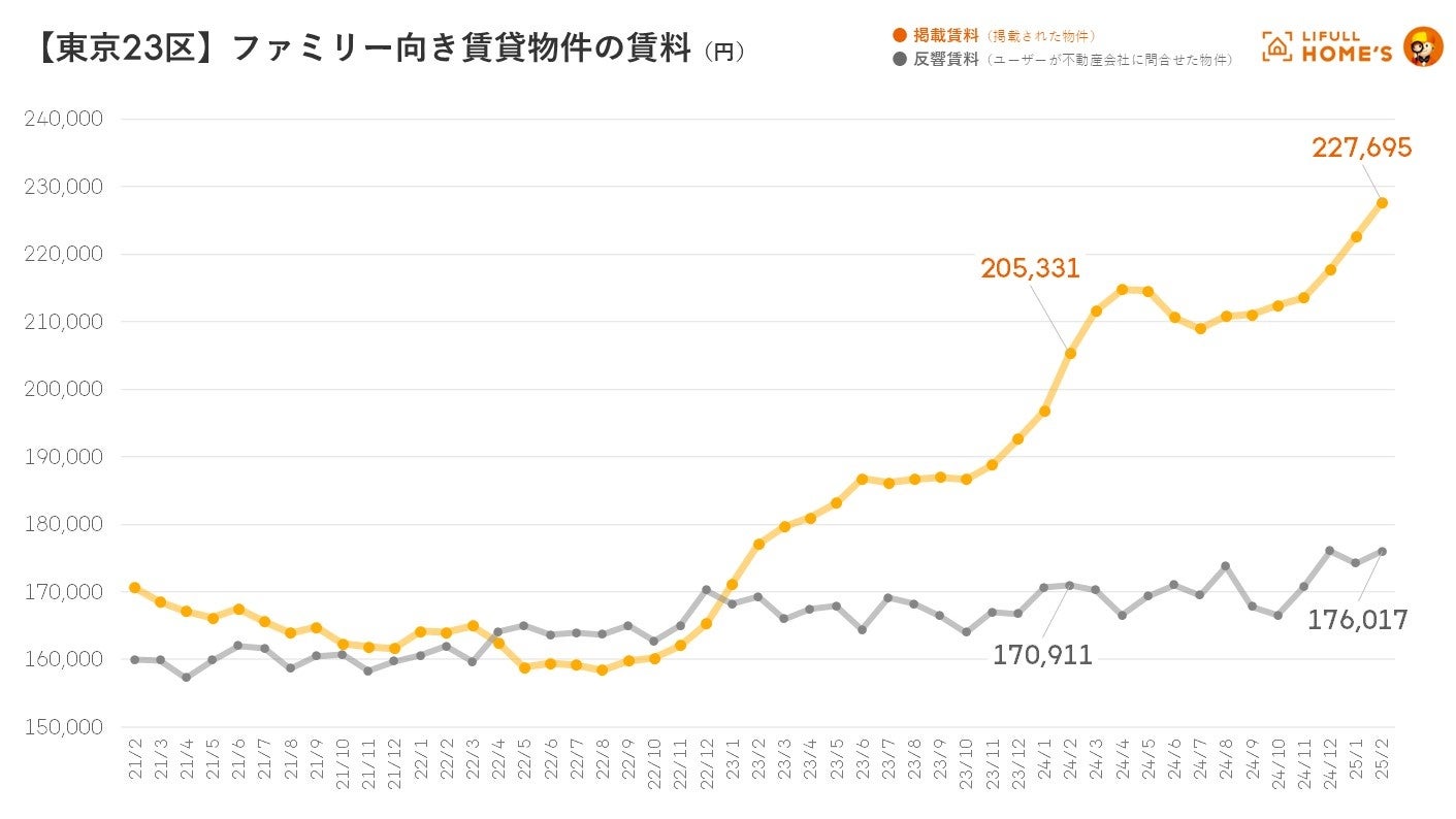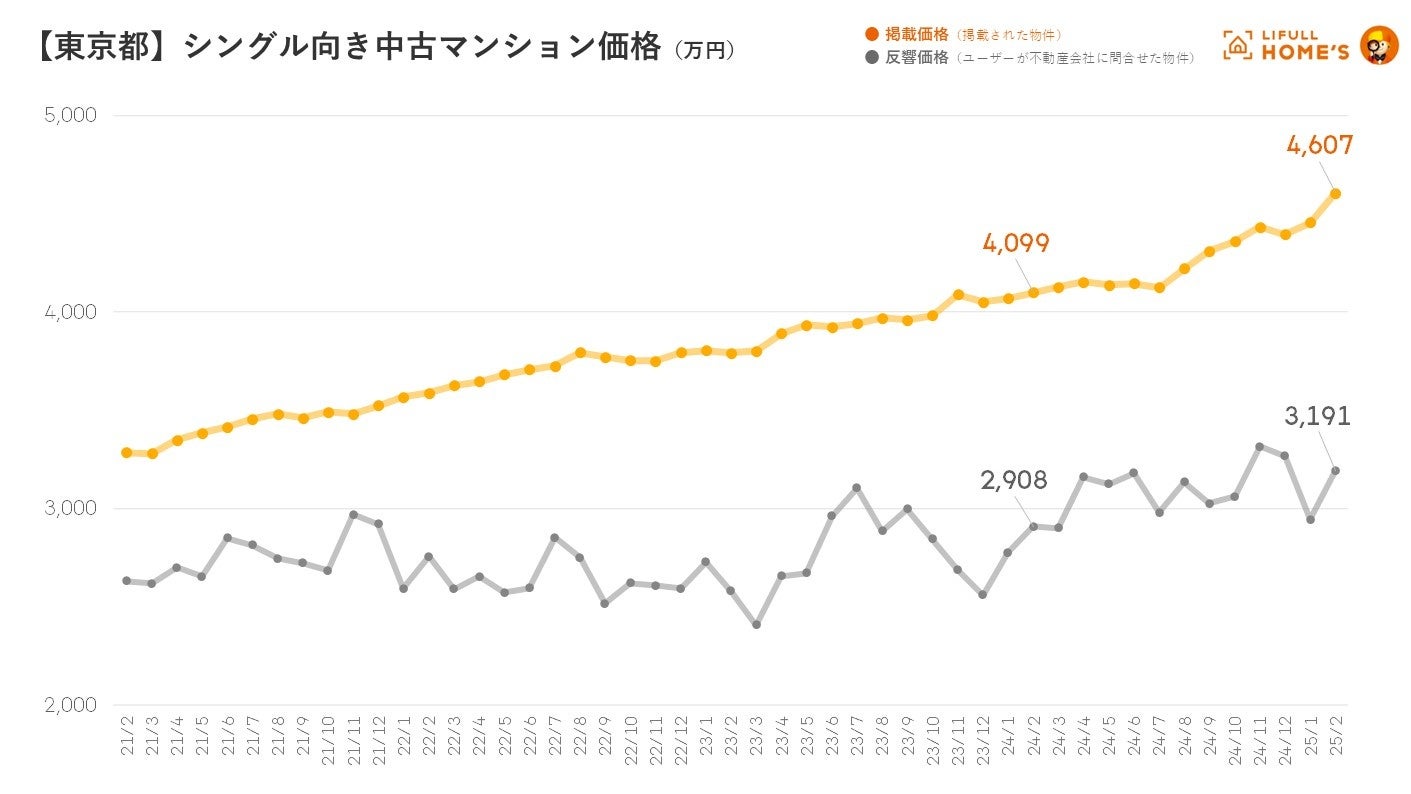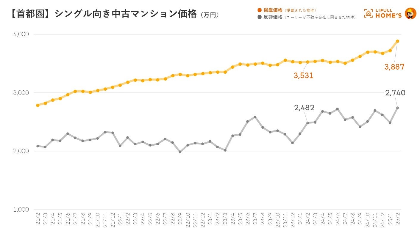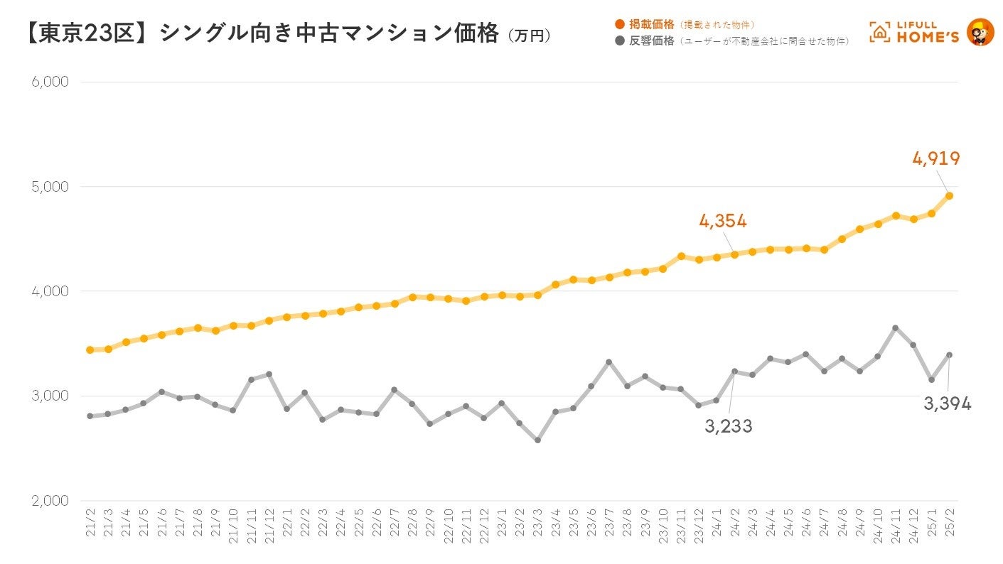 首都圏の掲載価格は過去最高*1を更新。東京23区ファミリー向きは前年比27%の大幅上昇