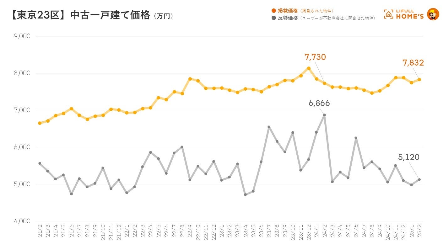 首都圏中古一戸建ての掲載価格は18ヶ月連続で前年同月を下回るも、東京23区では8ヶ月ぶりに前年比上昇