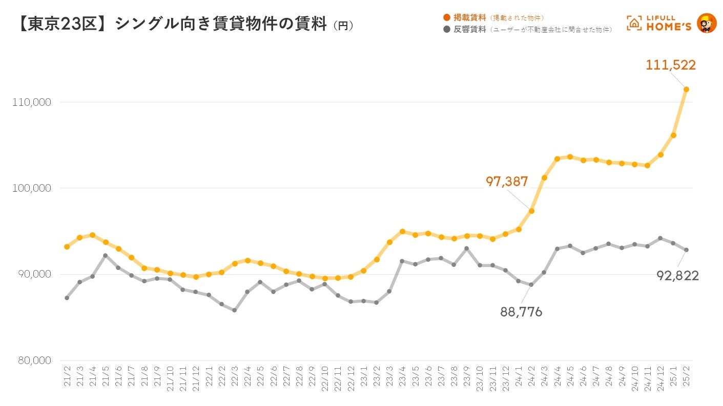 東京23区ではシングル向き・ファミリー向きともに前年同月比1割超アップ。値上げ時期の前倒しの兆候も