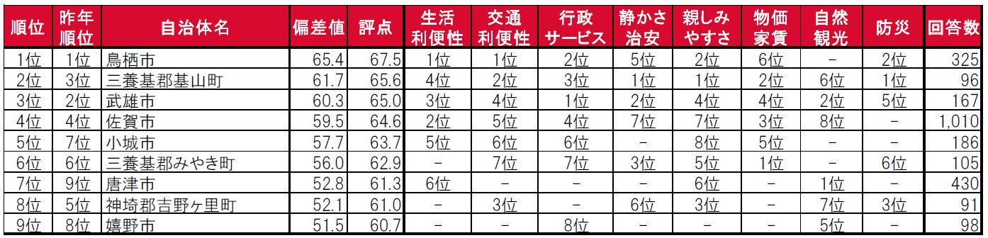 - 街の住みここちランキング2022<佐賀県版>自治体TOP9 因子別順位