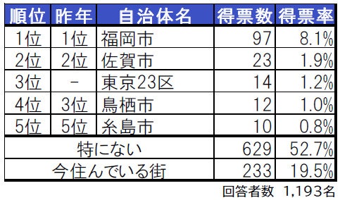 •「住みたい街(自治体)ランキング」は、佐賀県居住者による全国の自治体を対象とした2022年回答を集計しました。