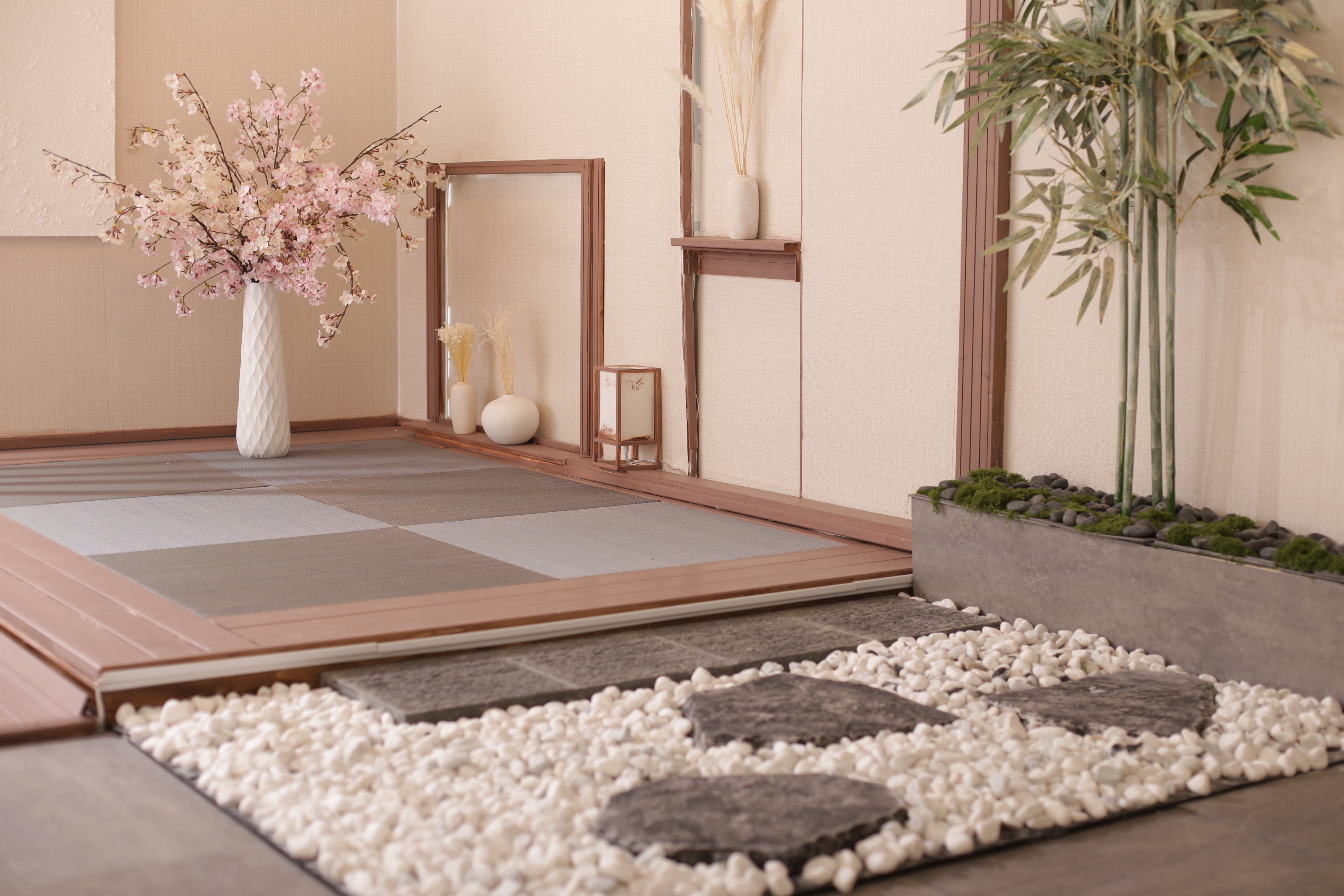 伝統的な日本の家屋に特有の畳を敷き詰めた部屋が和室の定番。