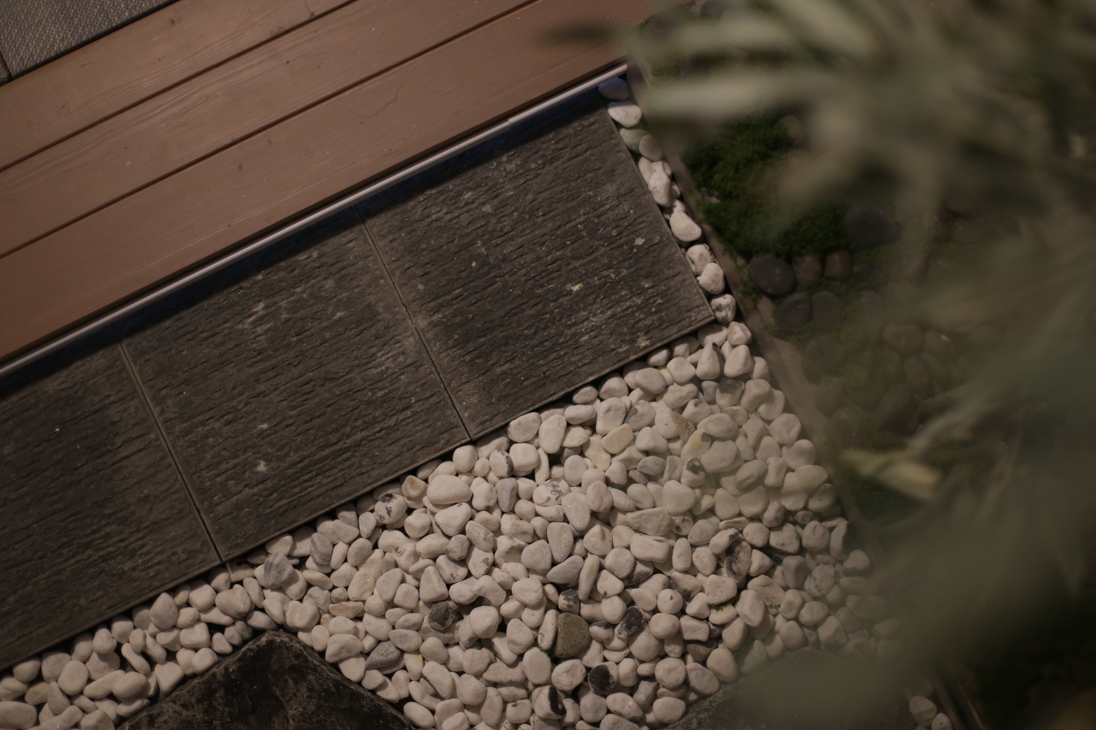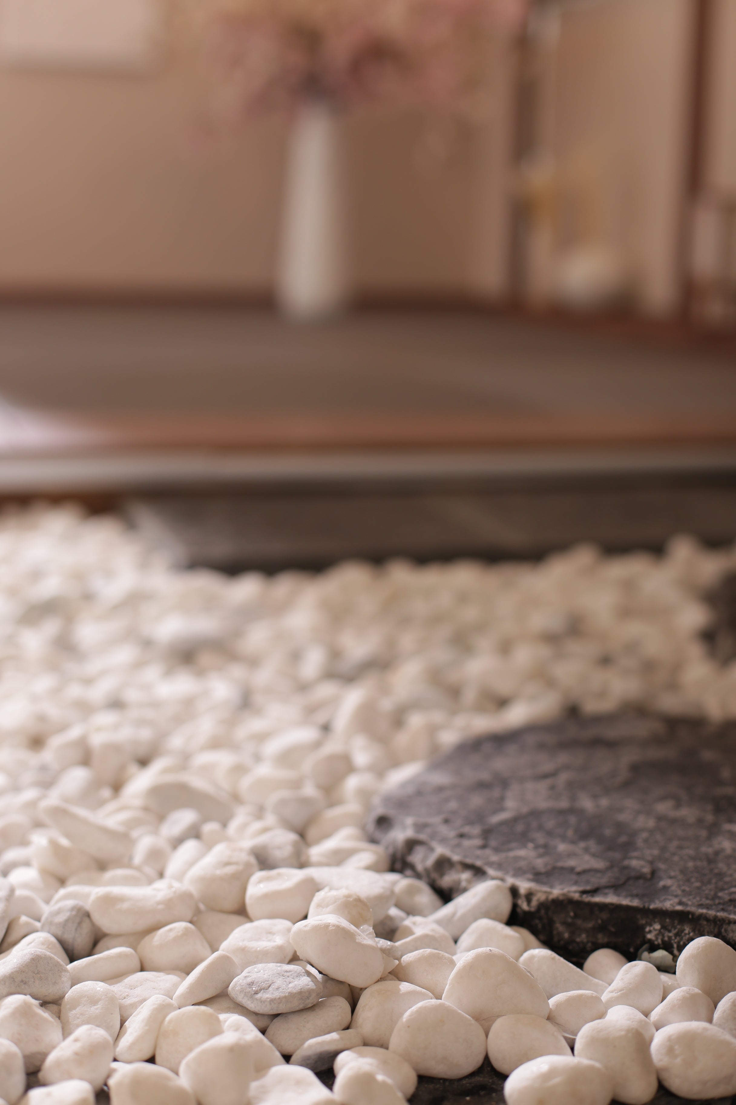 庭園には和室を引き立てる、ぎっしり詰まった白石が綺麗です。