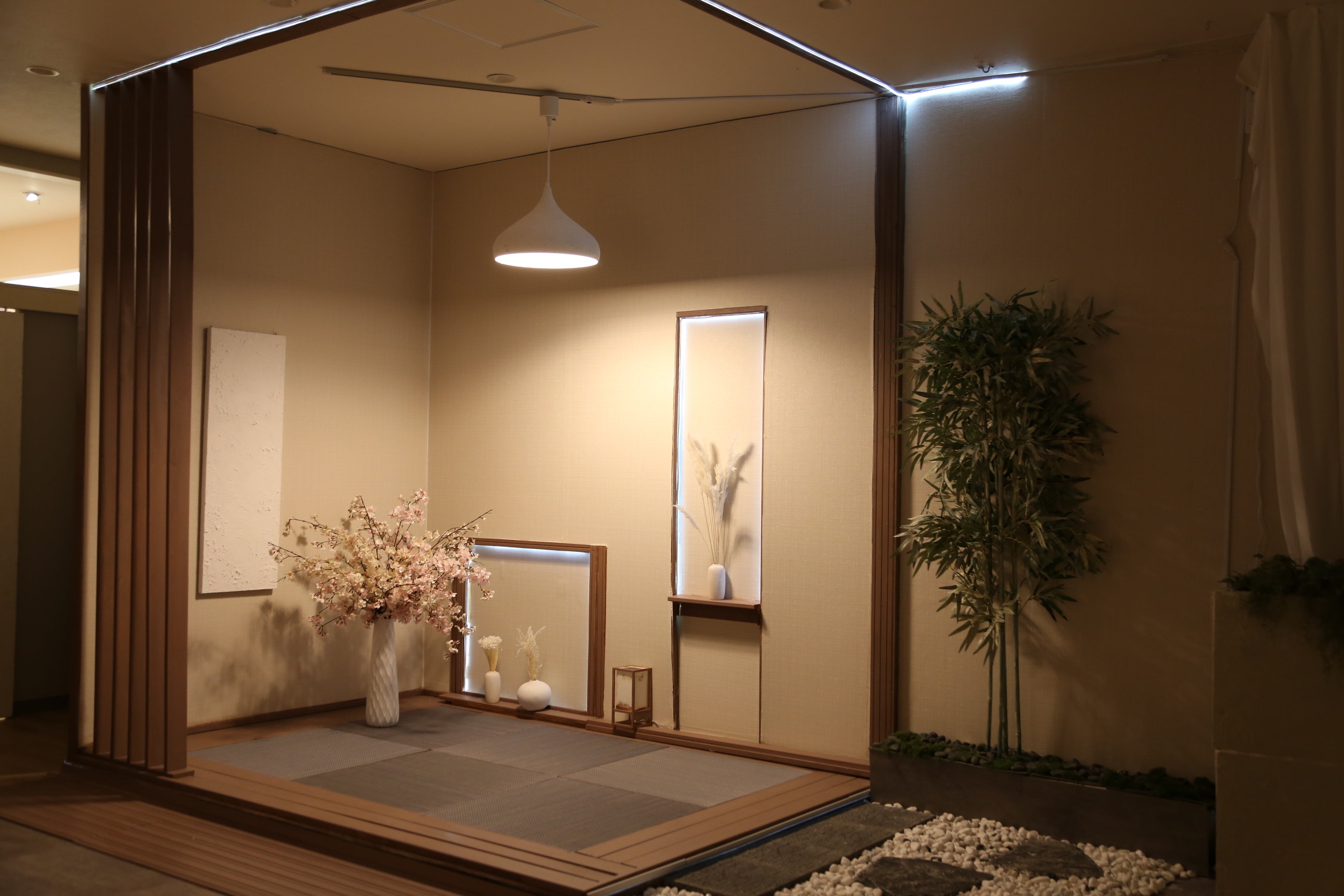 日差しあふれる朝と日が落ちた夜に光を灯した2面性を持つ和と光のコラボレーション。新感覚和室が写真工房ぱれっと函館店に登場。