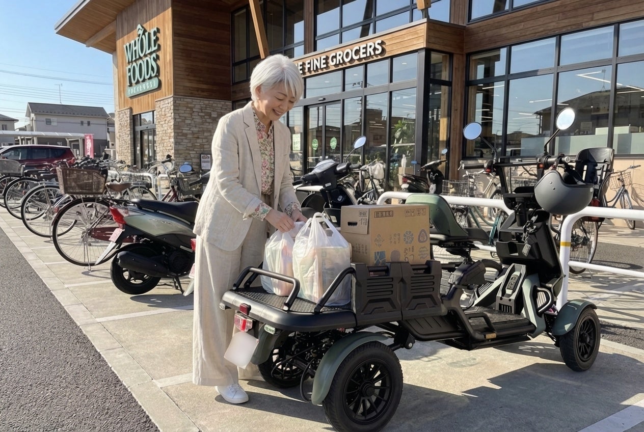 十分な積載量で買い物など免許返納後の日常移動を支え、車を手放しても生活圏内を無理なく移動できます。