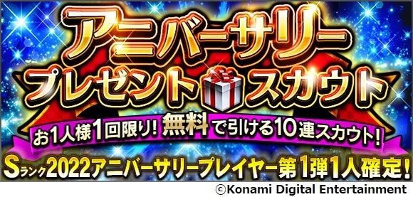 さらに、『プロスピA』7周年を記念して、Sランク「2022 アニバーサリープレイヤー第1弾」選手確定の無料10連スカウトを実施します!!
