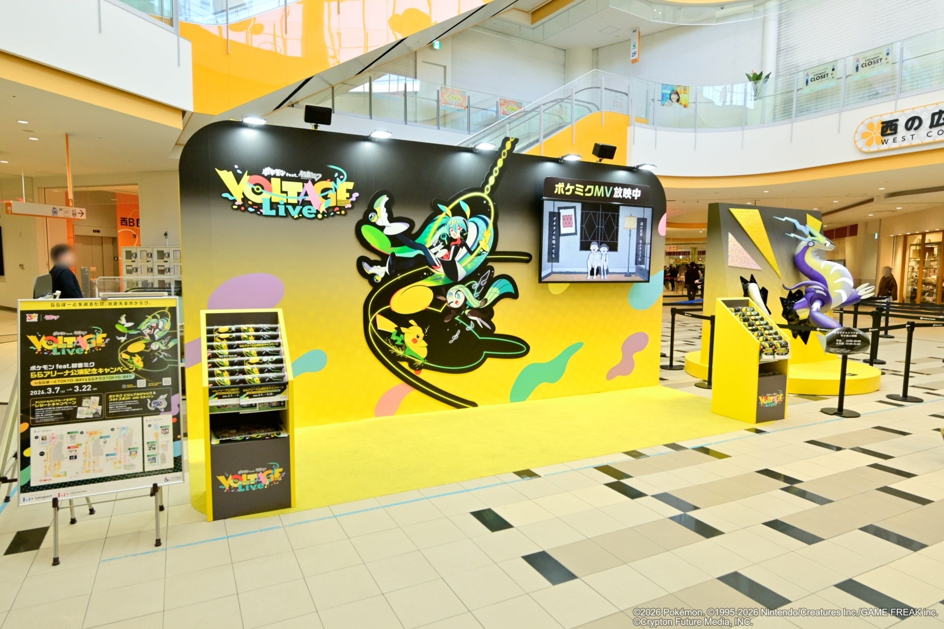 さらに「ポケミクライブ」の公演記念として、会場付近の商業施設(ららぽーとTOKYO-BAY、ららテラスTOKYO-BAY)でもキャンペーンを展開。3月7日(土)~3月22日(日)まで、施設内にフォトスポットが設置されたほか、様々な場所が「ポケミクライブ」のビジュアルで彩られました。