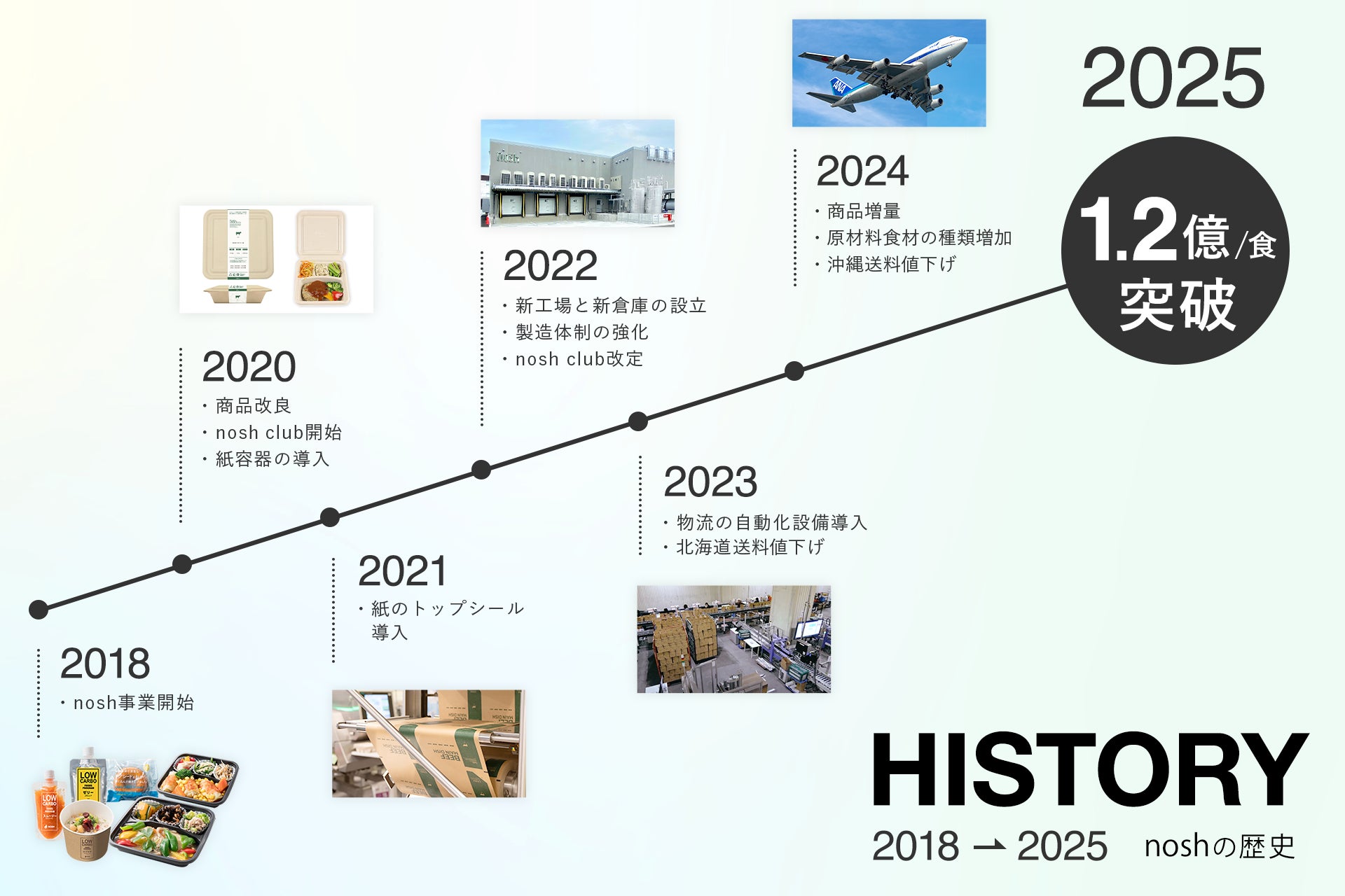 昨今の健康志向の高まりや、中食需要、時短ニーズなど、目まぐるしく変化する現代のライフスタイルにマッチしたサービスを提供することで、多くのお客様からご支持をいただき、2025年3月には累計販売食数が1億2,000万食を突破。そしてこのたび、1億2,380万食に到達いたしました。これは、日本の総人口に相当し、すべての日本人が1食noshを食べた数に匹敵します。これもひとえに、日頃よりご利用いただいている皆さまのおかげです。心より感謝申し上げます。