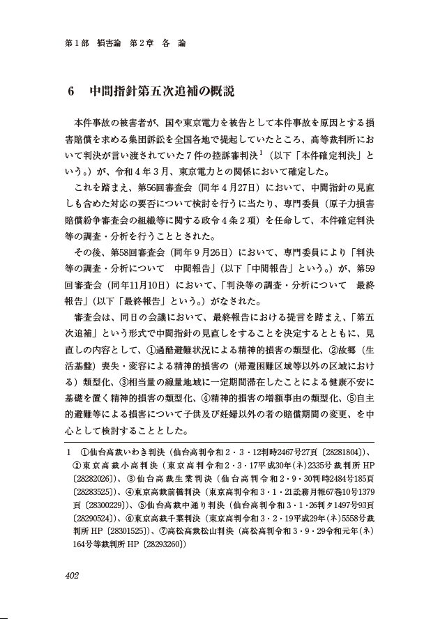 2022年12月策定の中間指針第五次追補にも必要な範囲で言及した充実の解説書。