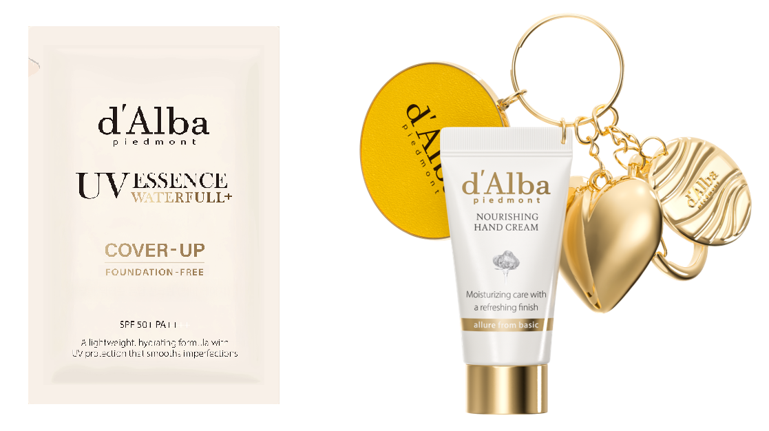 ダルバ商品を税込2,000円以上お買い上げでサンクリーム(カバーベージュ)とVCAサンクリーム2mLのパウチを、税込4,000円以上お買い上げでハンドクリームキーリングをプレゼント。