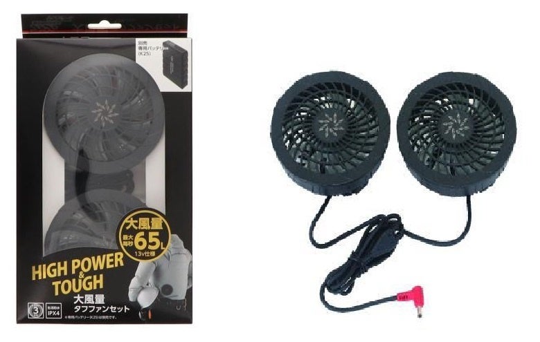 K+WORKS ファンが取り付けられるウェア用 大風量タフファンセット K25-13V