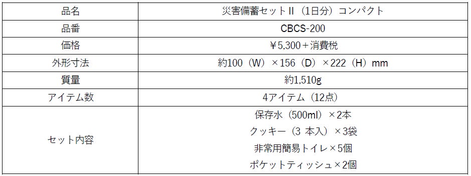 製品名:「災害備蓄セットⅡ(1日分)コンパクト」