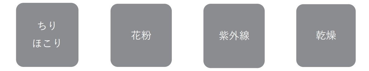 ●大気中のちり・ホコリ遮断成分※6=大気中のちり・ホコリ、花粉を遮断する成分