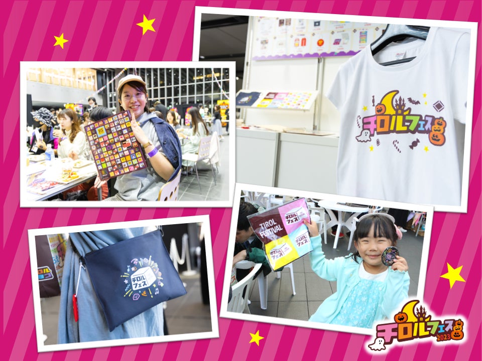 会場では、オリジナルのグッズを多数販売!チロルチョコの絵柄・キャラクターのマスキングテープやフレークシールが特に人気でした。ロゴ入りのTシャツ・サコッシュ等は会場でさっそく着用している方も♪
