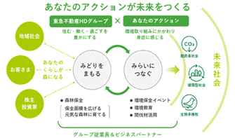 当社は、事業を通じた都市と自然の調和を図ることを目的に、森林保全活動「みどりをつなぐプロジェクト」を推進し、お客様を含むステークホルダーと一体で森林保全に取り組んでいます。