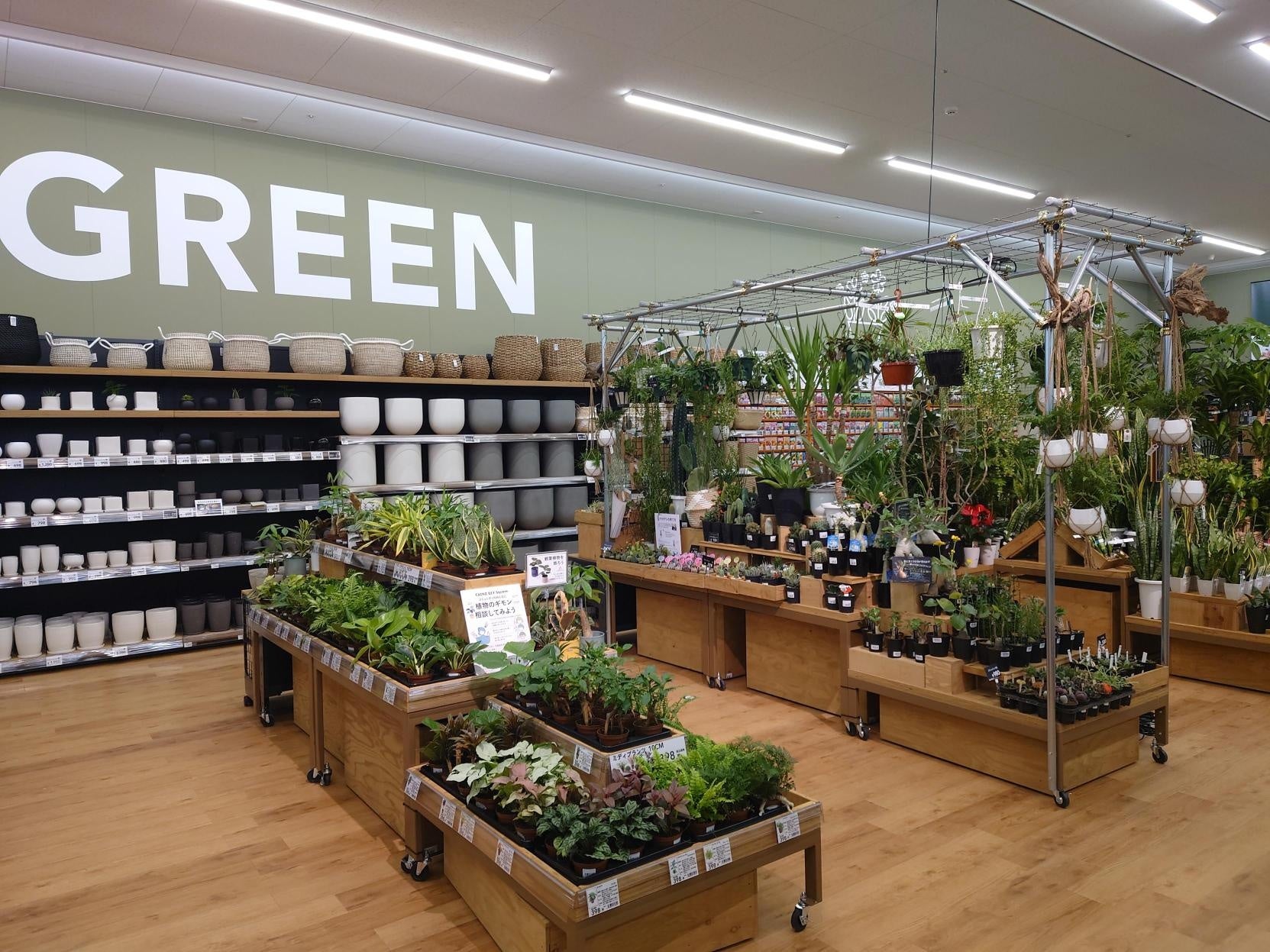 花苗や人気の室内観葉を豊富にラインアップしたガーデン売り場とプロ用ニーズを拡充した売場