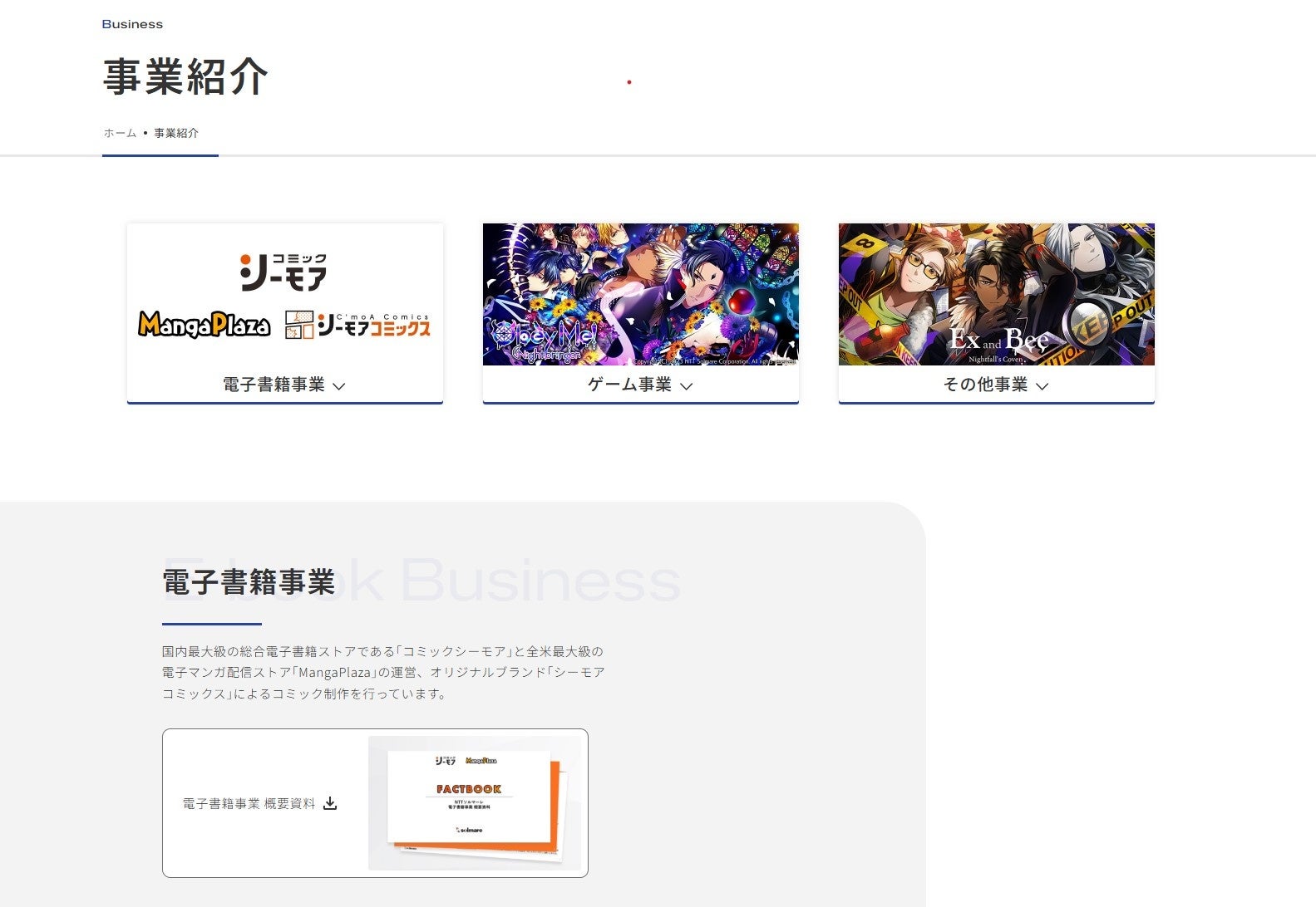 NTTソルマーレは、「エンターテインメントを通じ人の心を豊かにする」ことを目標とし、国内最大級の総合電子書籍ストアである「コミックシーモア」の運営、オリジナルブランド「シーモアコミックス」によるコミック制作、全米最大級の電子マンガ配信ストア「MangaPlaza」の運営、モバイルゲーム「Obey Me!シリーズ」「Shall we date?シリーズ」「Moe! Ninja Girls」を中心としたエンターテインメントサービスを提供しています。