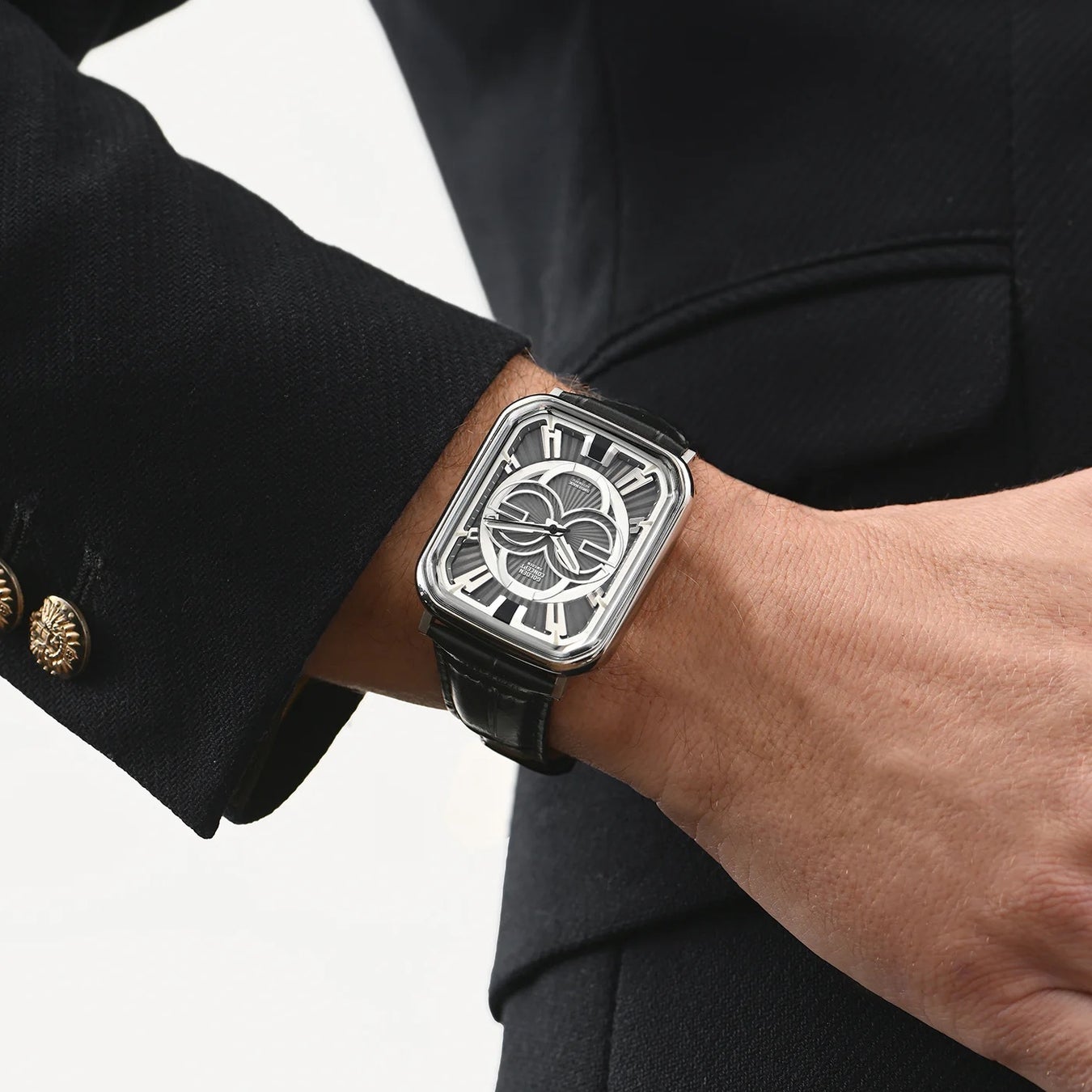このスイス製ムーブメントSW200は、精度と職人技が光る自動巻きです。26石の宝石と200個のパーツで構成され、スムーズで正確な動作を実現しています。スタイルとエンジニアリングが見事に融合した、高精度な自動巻き時計に仕上がっています。