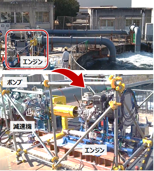 2022年1月31日~2月18日には、土木研究所(茨城県つくば市)にて、エンジンメーカーと艤装メーカー、ポンプメーカー、減速機メーカーによる実証試験が実施されました。