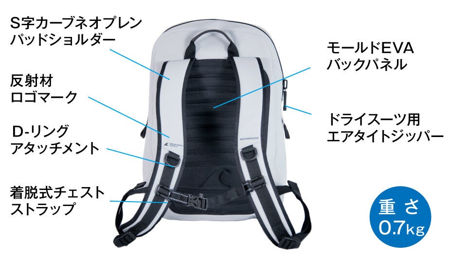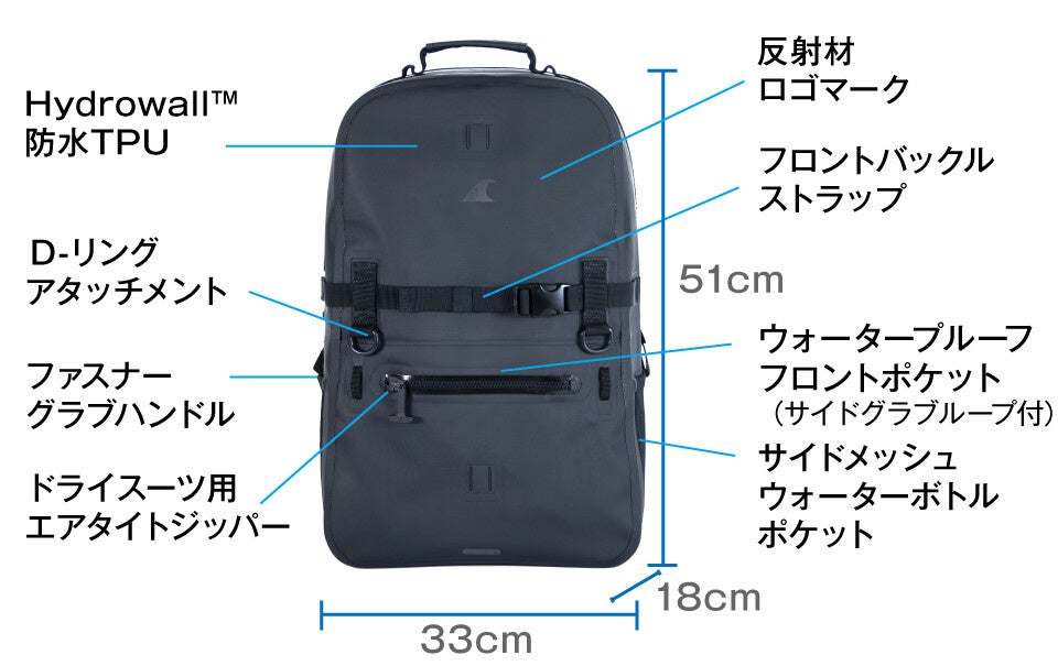 The Fogland Backpack(ザ・フォグランド・バックパック)は水中での使用を目的として作られた、IP67の防水規格を満たす完全防水バックパック。自社開発した高機能素材Hydrowall™により軽量で暑さにも寒さにも強く、高い耐久性を実現。