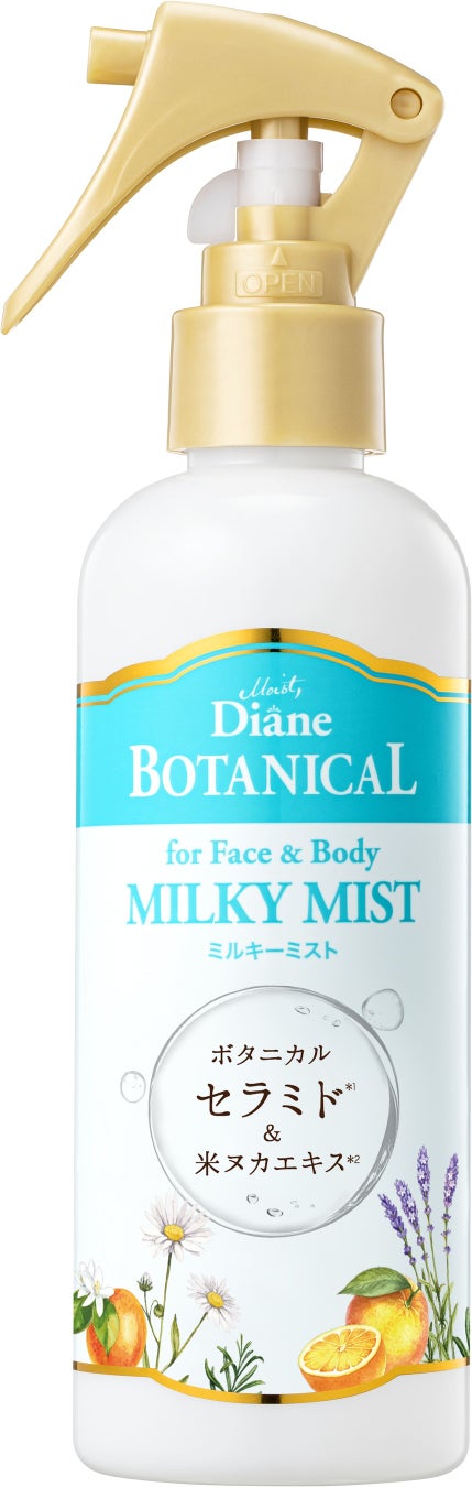 自然にも自分にもやさしいダイアンボタニカルならではの「10種のオーガニックボタニカルエキス※6」や「8種のレアオイル※7」はそのままに、ユズ・コメ・パインの3種のボタニカルセラミド※3を配合した全身用乳液ミスト。