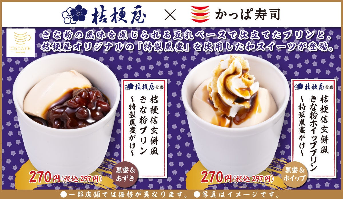 「桔梗屋」×「かっぱ寿司」ごちCAFEコラボ商品 山梨県銘菓「桔梗信玄餅」をイメージした和スイーツが登場
