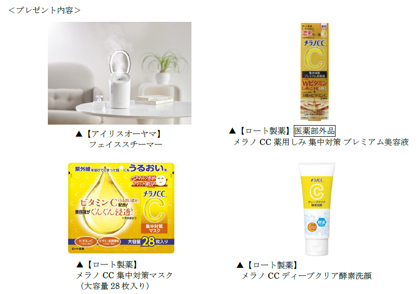 ロート製薬とのコラボレーションを記念し、X(旧Twitter)とInstagramにて「メラノCC×MiCOLA(ミコラ)コラボ記念キャンペーン」を開催します。キャンペーンにご応募いただいた中から抽選で合計6名様にフェイススチーマーと「メラノCC」ブランド商品をプレゼントいたします。