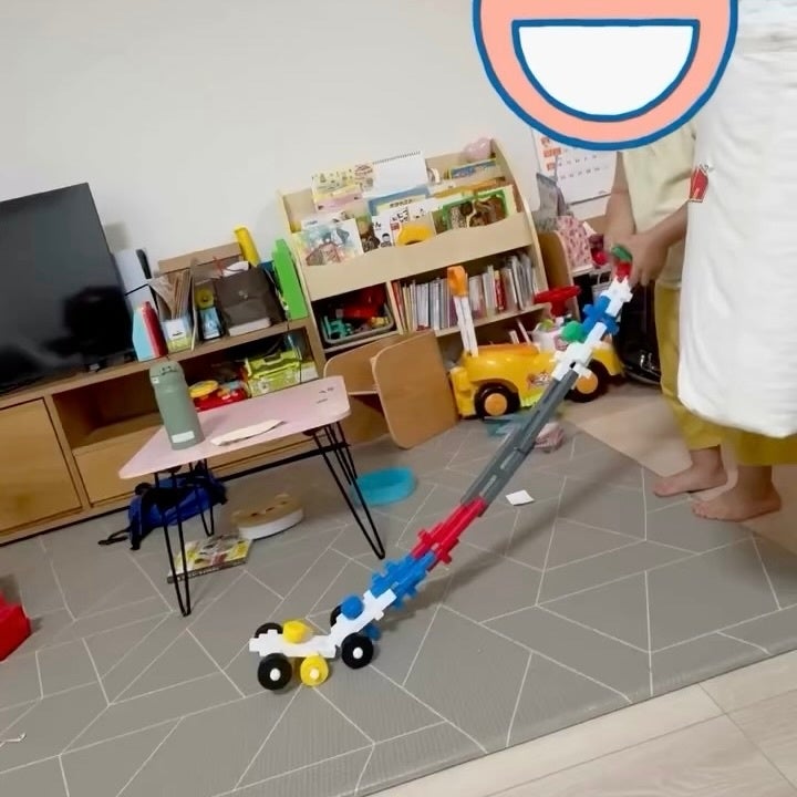 縦型洗濯機の特徴を細かく再現していて、注水や排水、洗剤入れまでこだわりが詰まっていますね✨布を入れて遊ぶ姿もリアルで楽しそうです🧺