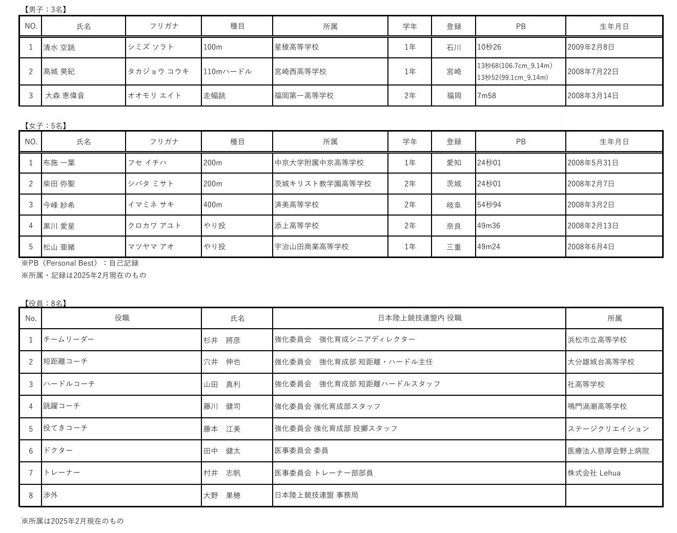 2025年4月15日(火)~18日(金)にダンマーム(サウジアラビア)で開催される「ダンマーム2025 U18アジア陸上競技選手権(https://www.jaaf.or.jp/competition/detail/1934/)」に派遣する、日本代表選手が決定いたしましたのでお知らせいたします。