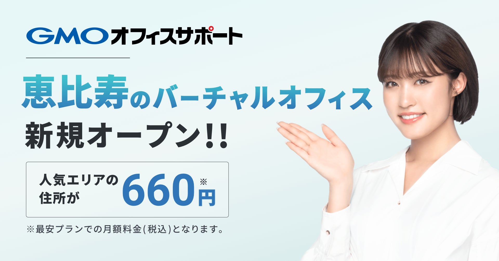 バーチャルオフィスサービス「GMOオフィスサポート」、2023年10月2日より新たに恵比寿の住所提供を開始!