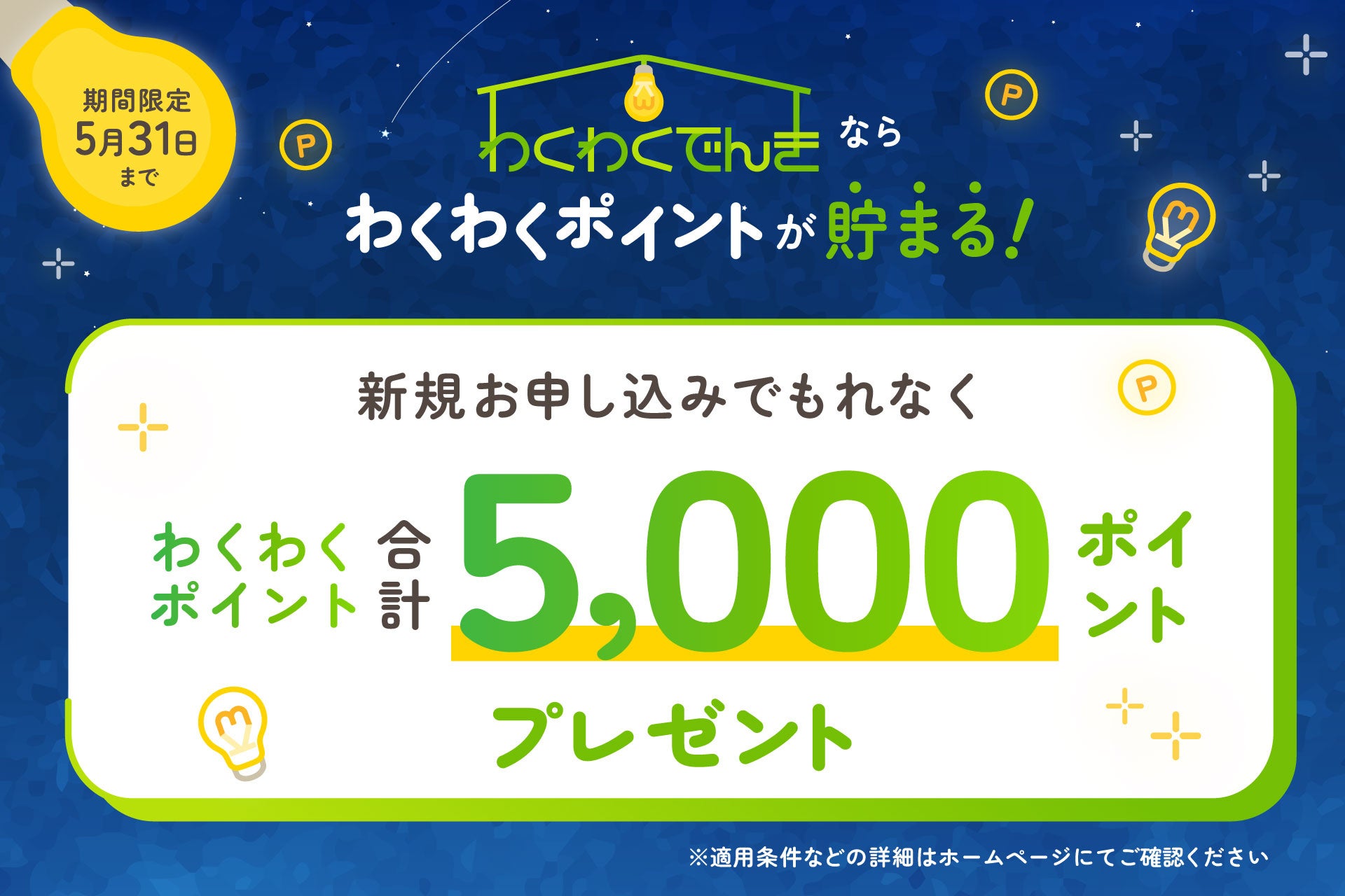 新規お申し込みの方限定でわくわくポイント5,000ポイントプレゼント