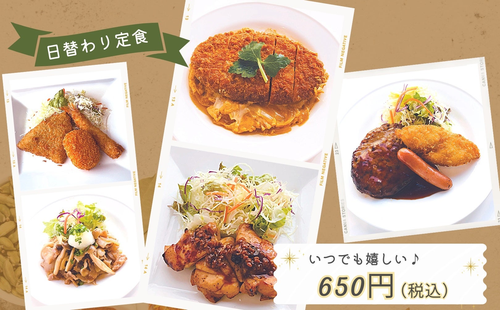お財布に優しい!いつでも嬉しい税込650円の『日替わり定食』は、安くてボリューム満点!日替わりで毎日飽きることなくお楽しみいただけます!