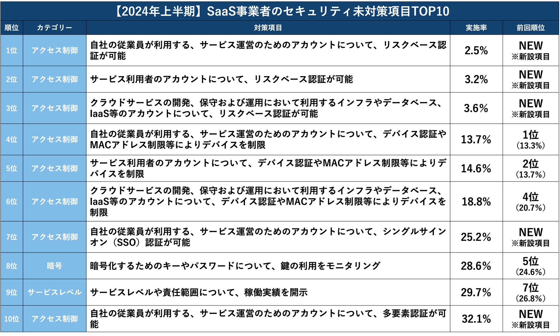 【2024年上半期セキュリティレポート Vol.2】SaaS事業者のセキュリティ未対策項目 TOP10
