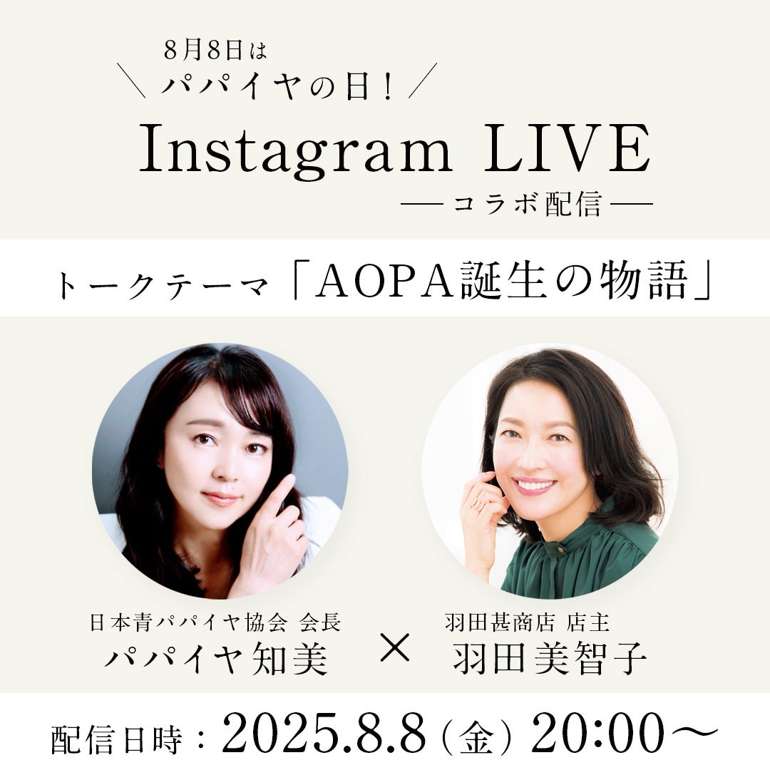 また、8月8日(金)20時からは、日本青パパイヤ協会会長・パパイヤ知美さんをお迎えしてのスペシャルインスタライブを配信。青パパイヤの栄養や美容・健康効果の最前線について、羽田美智子の自らの体験談とともに、専門家によるわかりやすい解説をお届けします。