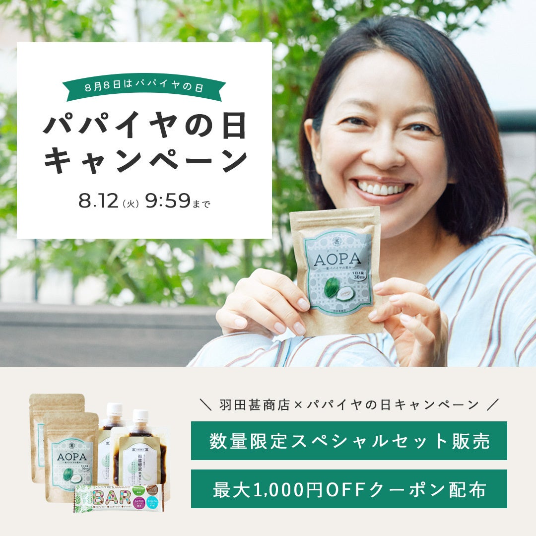 羽田甚商店オンラインショップ(パパイヤの日特設ページ)にて、青パパイヤ商品が特別価格で登場。健康・美容をテーマにした商品ラインナップをお楽しみいただけます。青パパイヤ商品のお得なセットはもちろん、他のオススメ商品が詰まったスターターセットもお手頃な価格で体験いただけます。