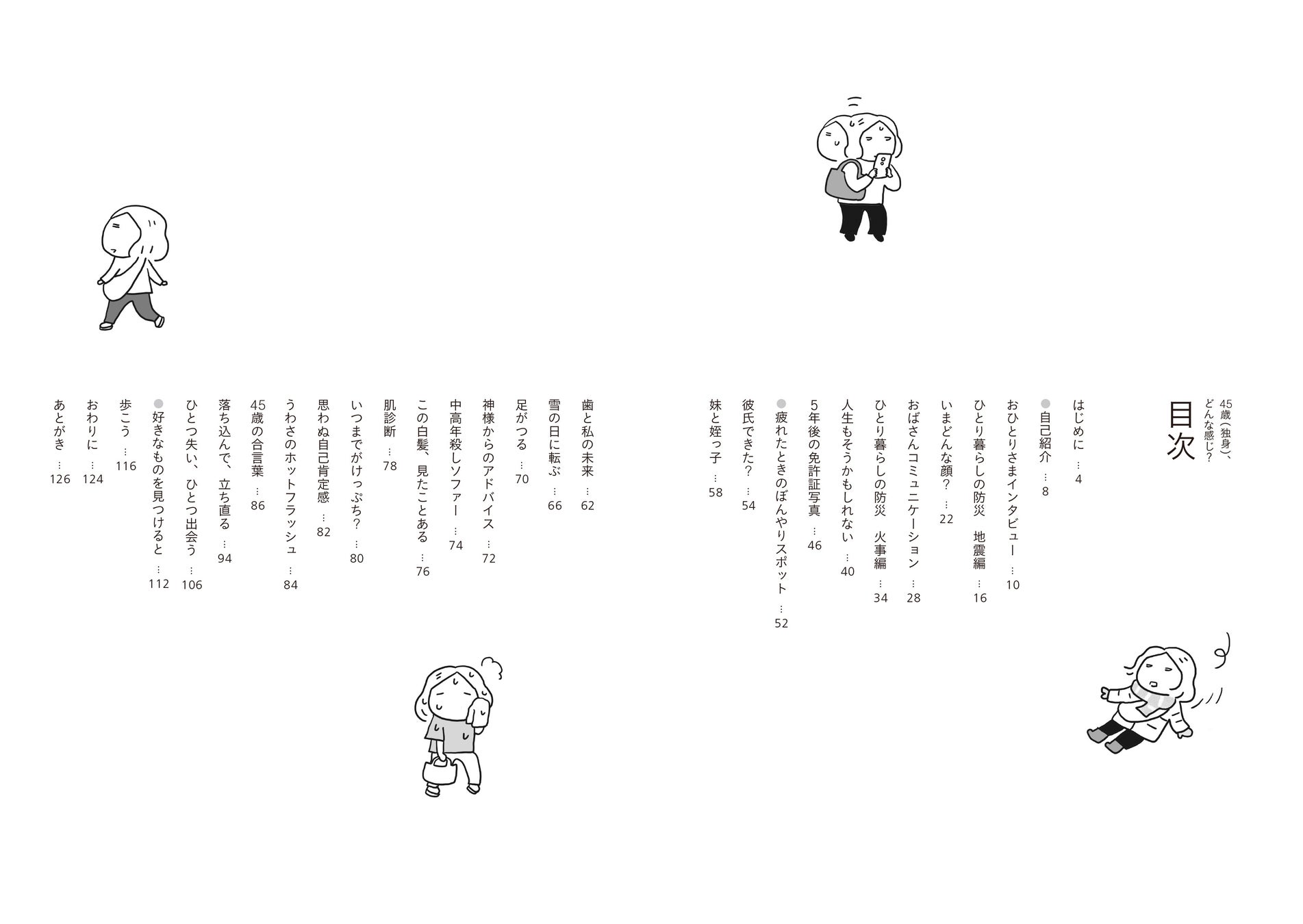 さて現在も東京に在住、一人暮らしのフリーランス。そんな著者が歳を重ねて人生をどのように感じながら歩んでいるのか、日常のイラストともに、ありありと浮かぶような作品になっています。