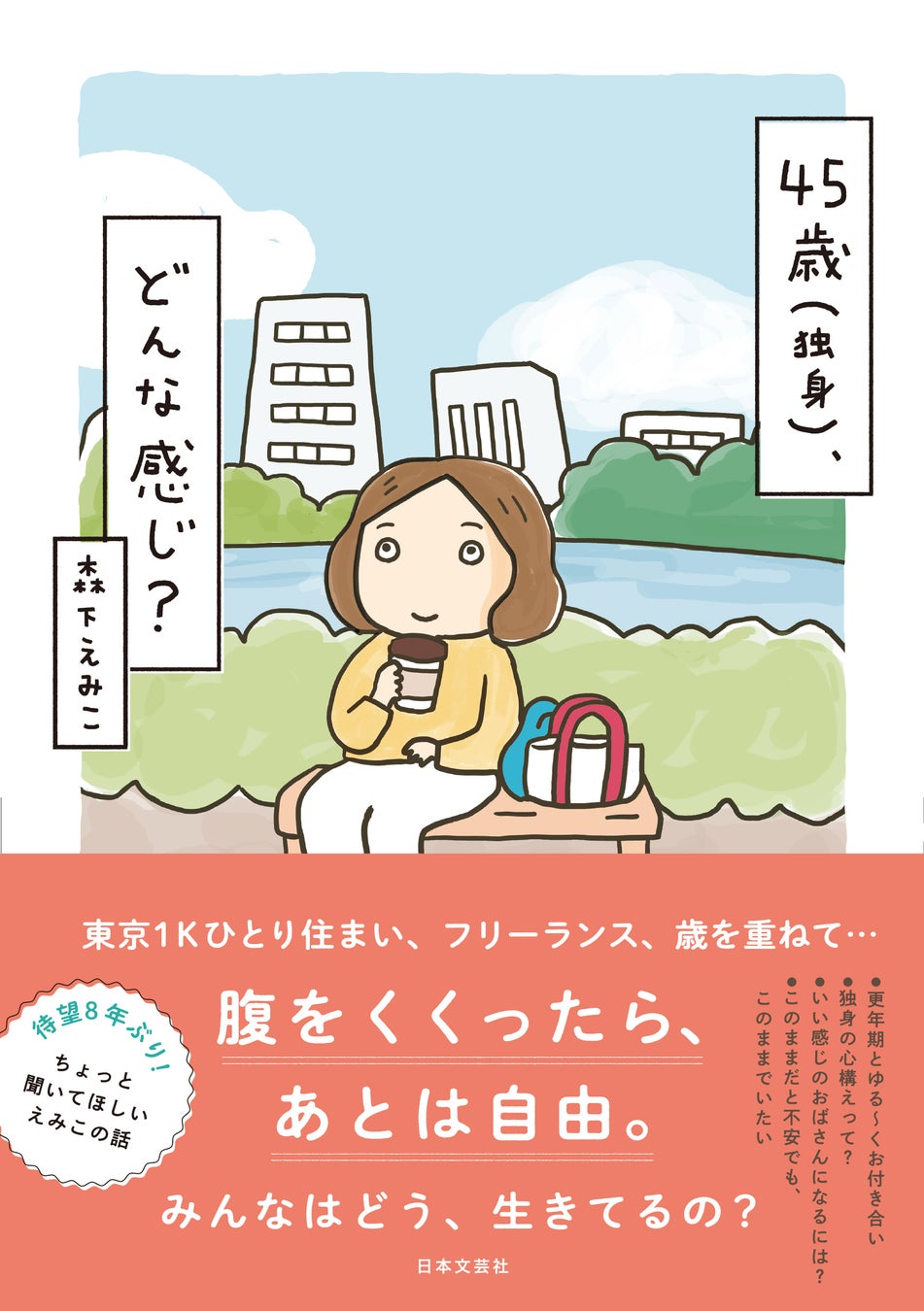 即重版決定!【人気イラストレーター森下えみこ氏】8年ぶりに自身の日常を描くコミックエッセイ『45歳(独身)、どんな感じ?』