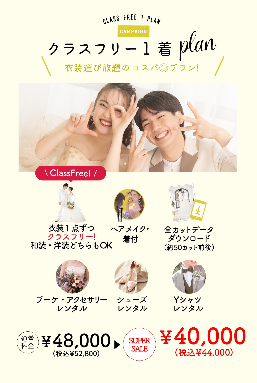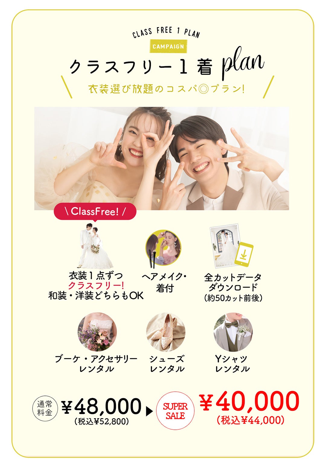 全てのプランが「衣装追加料金なし」のクラスフリープランになっております。