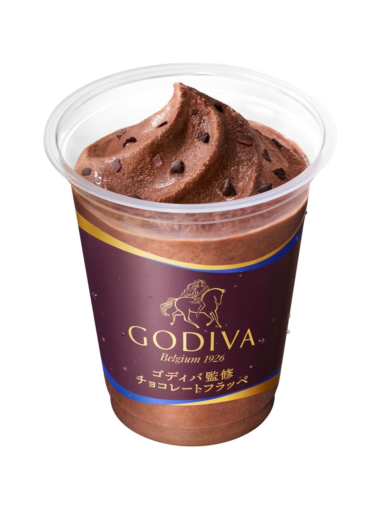 「ゴディバ監修チョコレートフラッペ」は、ゴディバの代名詞である、ベルギー産チョコレートを使用し、本格的で芳醇なチョコレート感を再現したチョコレートフラッペです。昨年ご好評いただいた「カカオ感」「濃厚感」を出すために原材料にもこだわり、濃厚でビターな本格的な味わいに仕上げています。また、氷の粒を小さくすることでなめらかな「とろっ」とした口どけのフラッペに、粒チョコとチョコチップ、2種類のチョコレートを使用することで、様々な食感のチョコレートをお楽しみいただける一杯となっております。