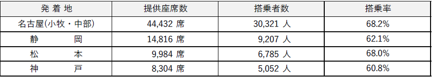 ※ 個人向け航空券を販売している『熊本=高知』チャーター便の提供座席数および予約数も含まれております。