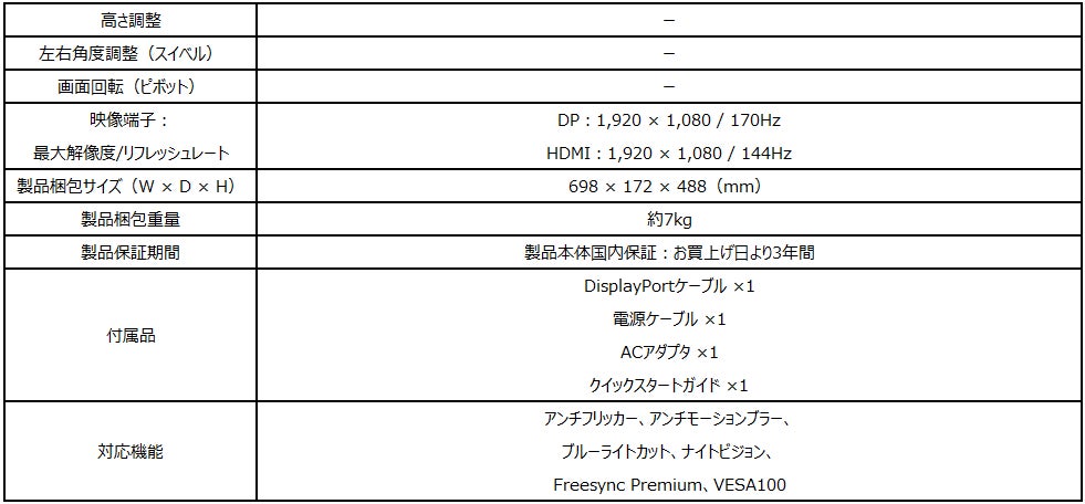 【リフレッシュレート170Hz / 応答速度1ms】