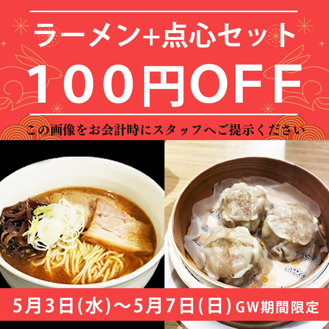 【板橋 前野町】GW期間限定・ラーメン+点心セット100円OFFサービスを実施|ラーメンあらいイオンスタイル板橋前野町フードコート1F