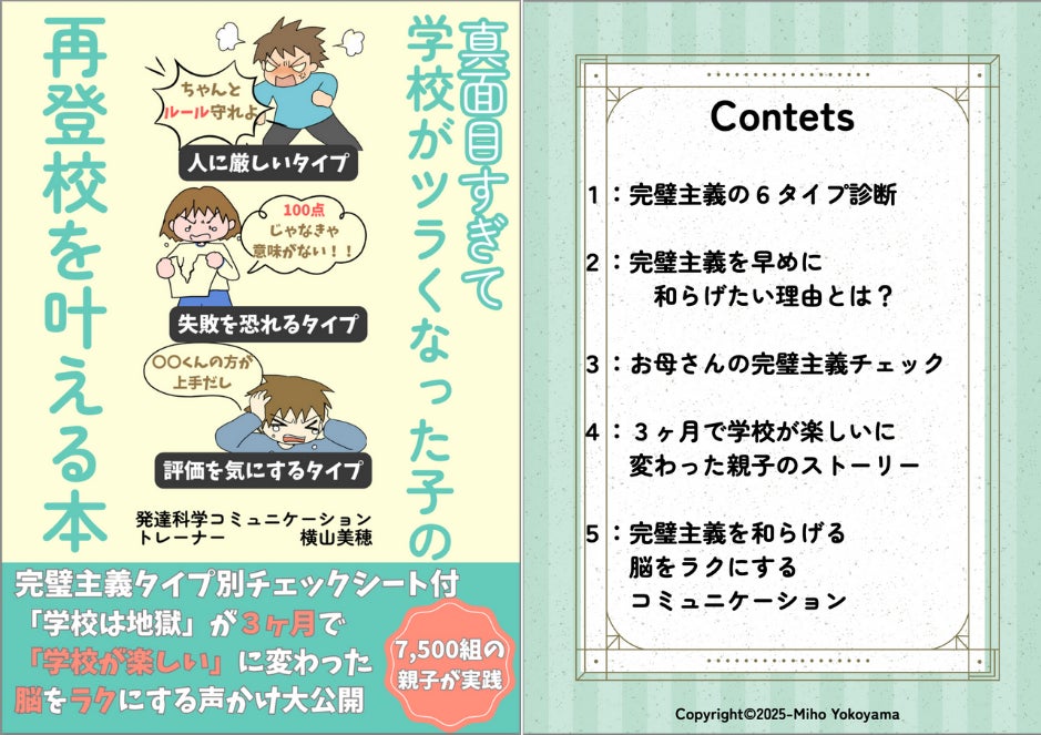 初めまして。発達科学コミュニケーション講師の横山美穂です。このたび、『真面目すぎて学校がツラくなった子の再登校を叶える本』電子書籍が完成し、12月15日まで期間限定ダウンロードを開始しました。