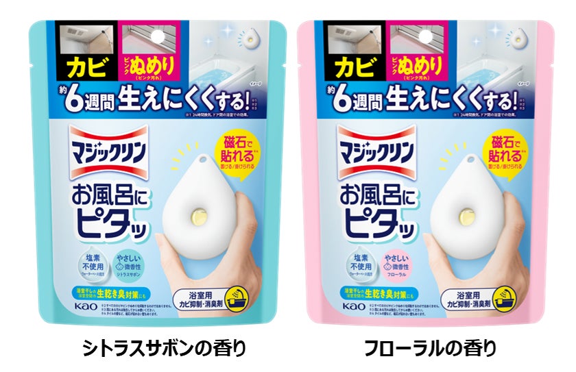 花王株式会社(社長・長谷部佳宏)は、住居用ブランド「マジックリン」より、2026年5月23日、カビやピンクぬめりを約6週間生えにくくする*²*³*⁴『マジックリン お風呂にピタッ』を発売いたします。