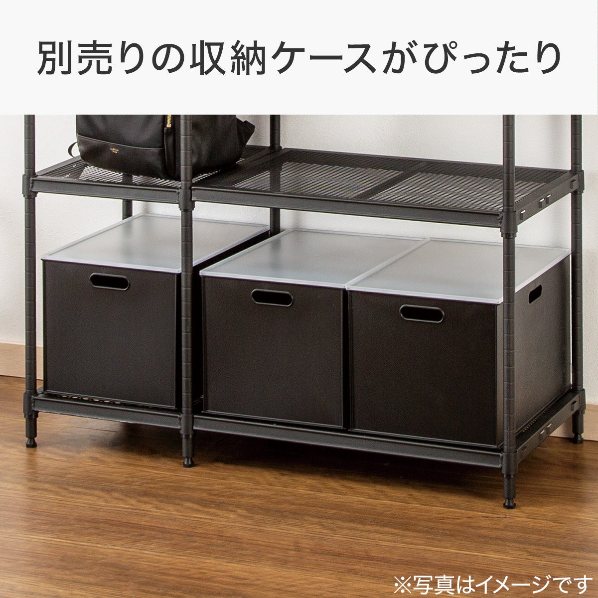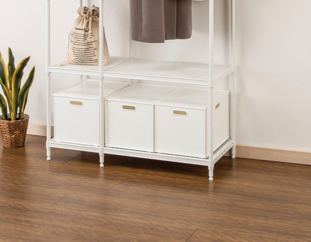 さらに、最下段は別売りの収納ケースを3つ置けるぴったりサイズですので、見せたくないものや散らかりやすい小物を収納するスペースとしてもご利用いただけます。