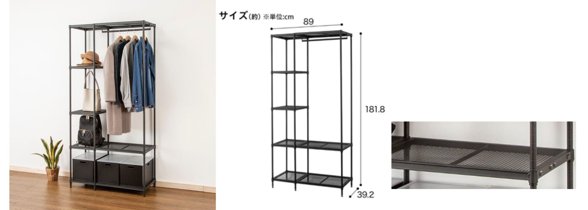 衣類やカバンをまとめて朝の身支度を簡単に!メッシュの網目が細かく、小物が置けるスチールワードローブが新登場