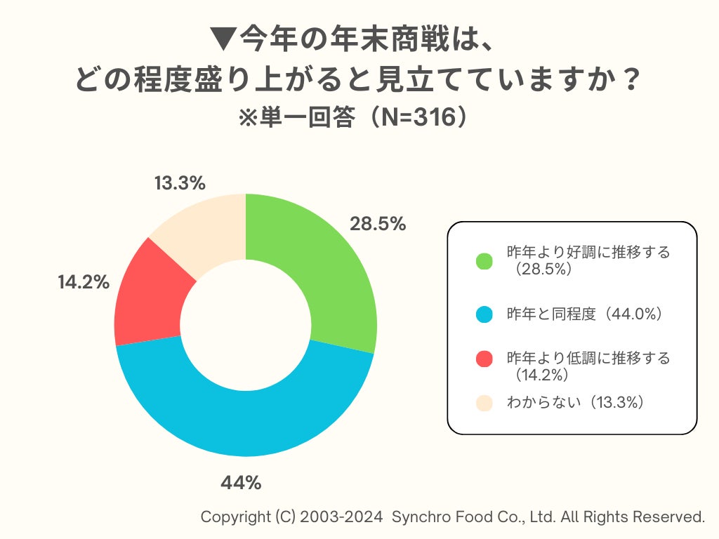 飲食店の出店・開業・運営に役立つサービスをワンストップで提供する「飲食店ドットコム」(https://www.inshokuten.com/home/)を運営する株式会社シンクロ・フード(本社:東京都渋谷区、代表取締役:藤代真一、東証プライム市場:3963)は、2024年における飲食店の年末繁忙期に向けた準備状況を調査しました。